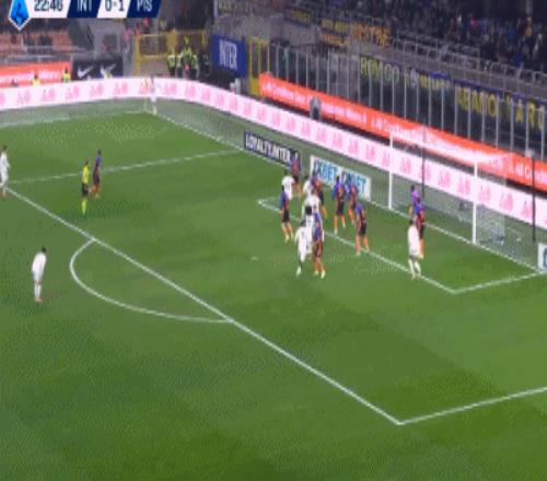 比赛刚开始没多久,国米就遭遇当头一棒。第11分钟,姆希塔良回传出现问题,索默后场出球被断,比萨前锋莫雷奥不停球直接吊射破门,国际米兰0-1落后,多少有些让人意外!
